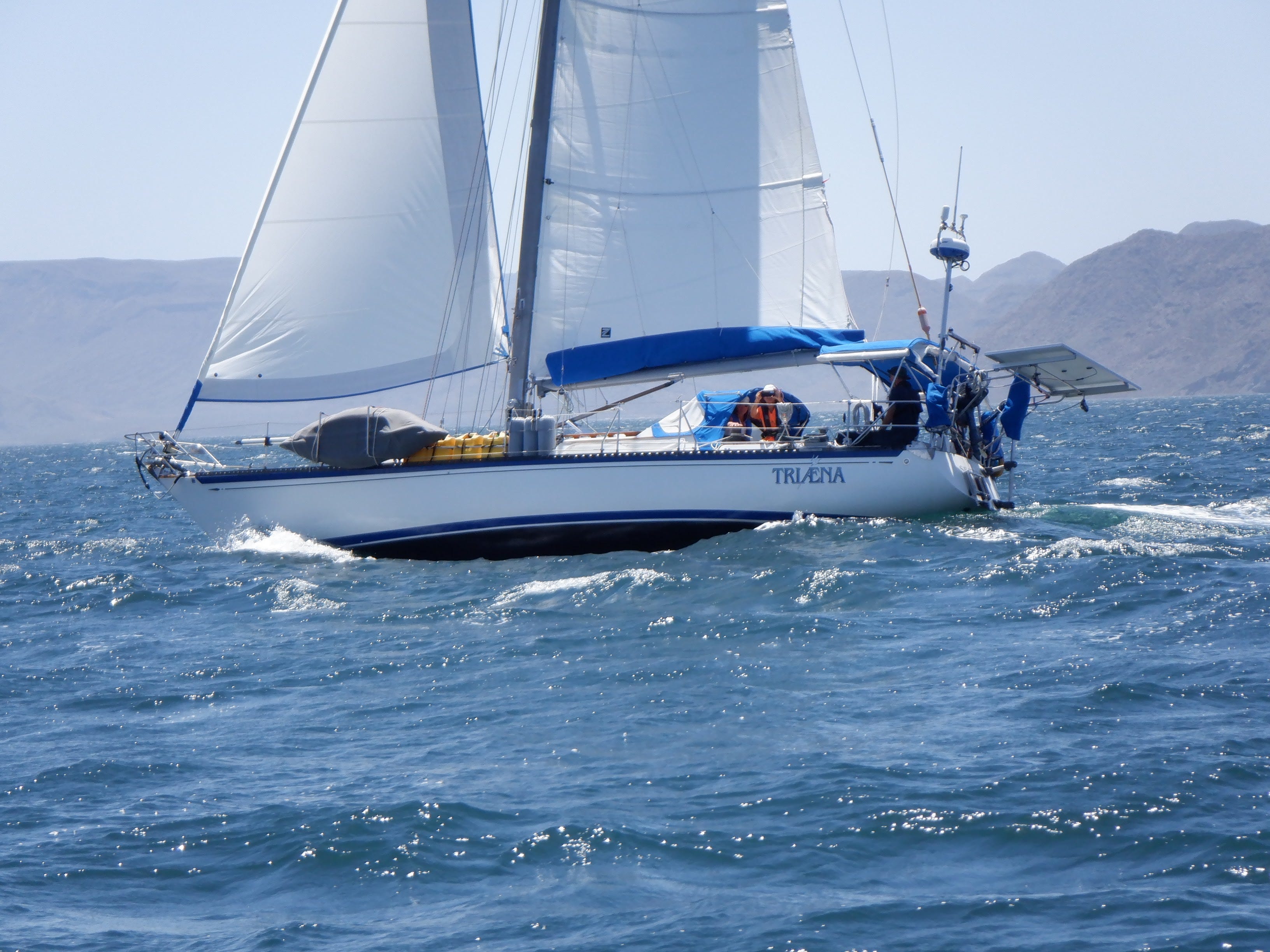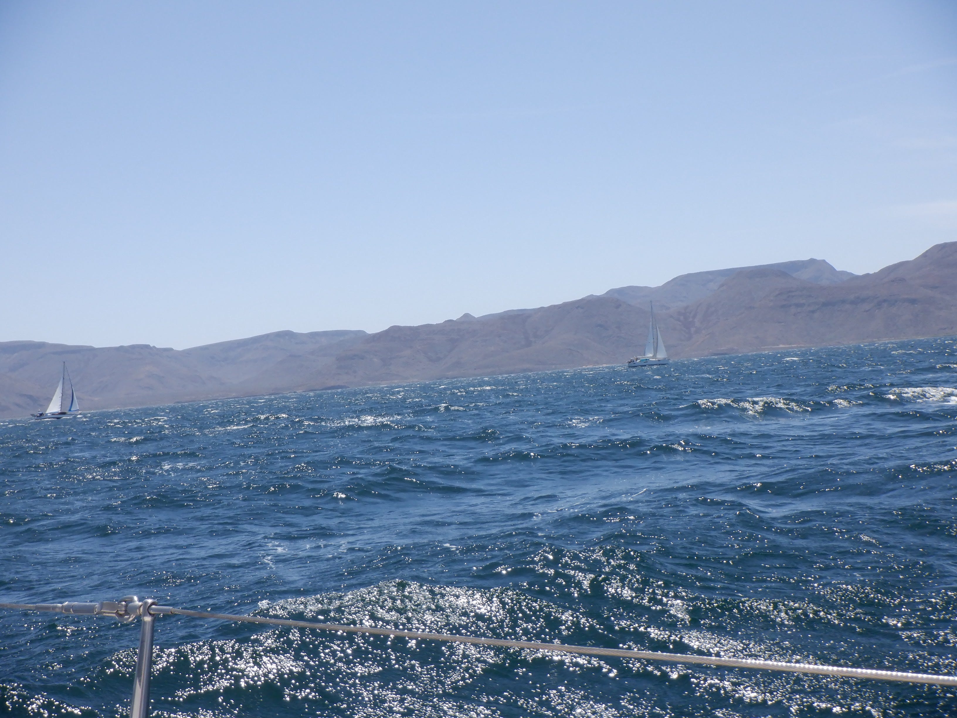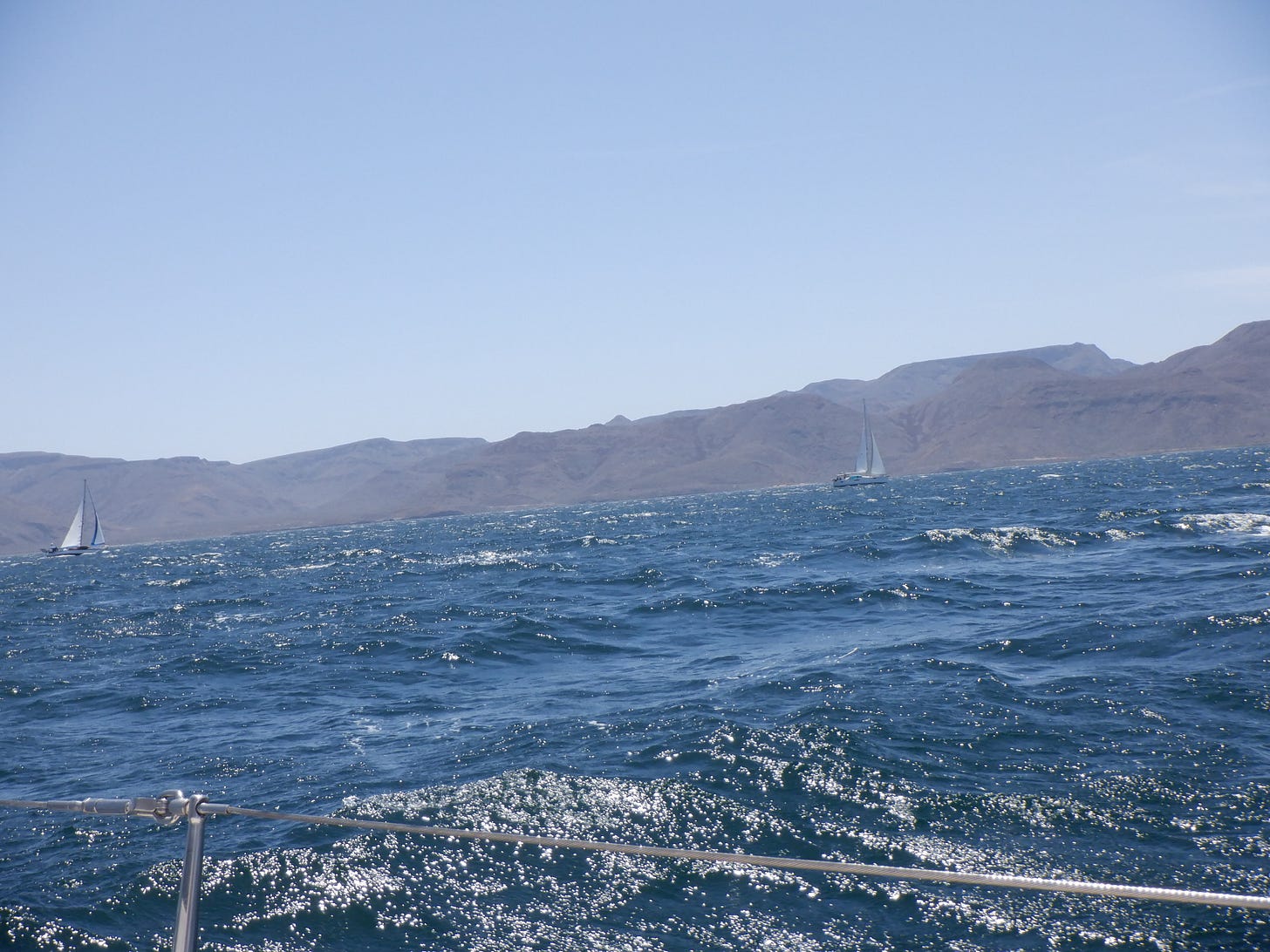 The forecast called for fifteen to twenty knots of wind and since Charlie used to race sailboats, we decided to organize a regatta in his honor with our friends. Two boats joined us for what we started calling the “Charlie Allen Regatta" — Fundango and Triæna. Rochambeau would have joined too, but John crewed with us and Marcy crewed with Tom and Patty on Triæna, so Rochambeau stayed on the anchor. Scott and Joanne on Fundango invited another Ha Ha couple from Chaos to crew with them on Fundango. We had everything set!