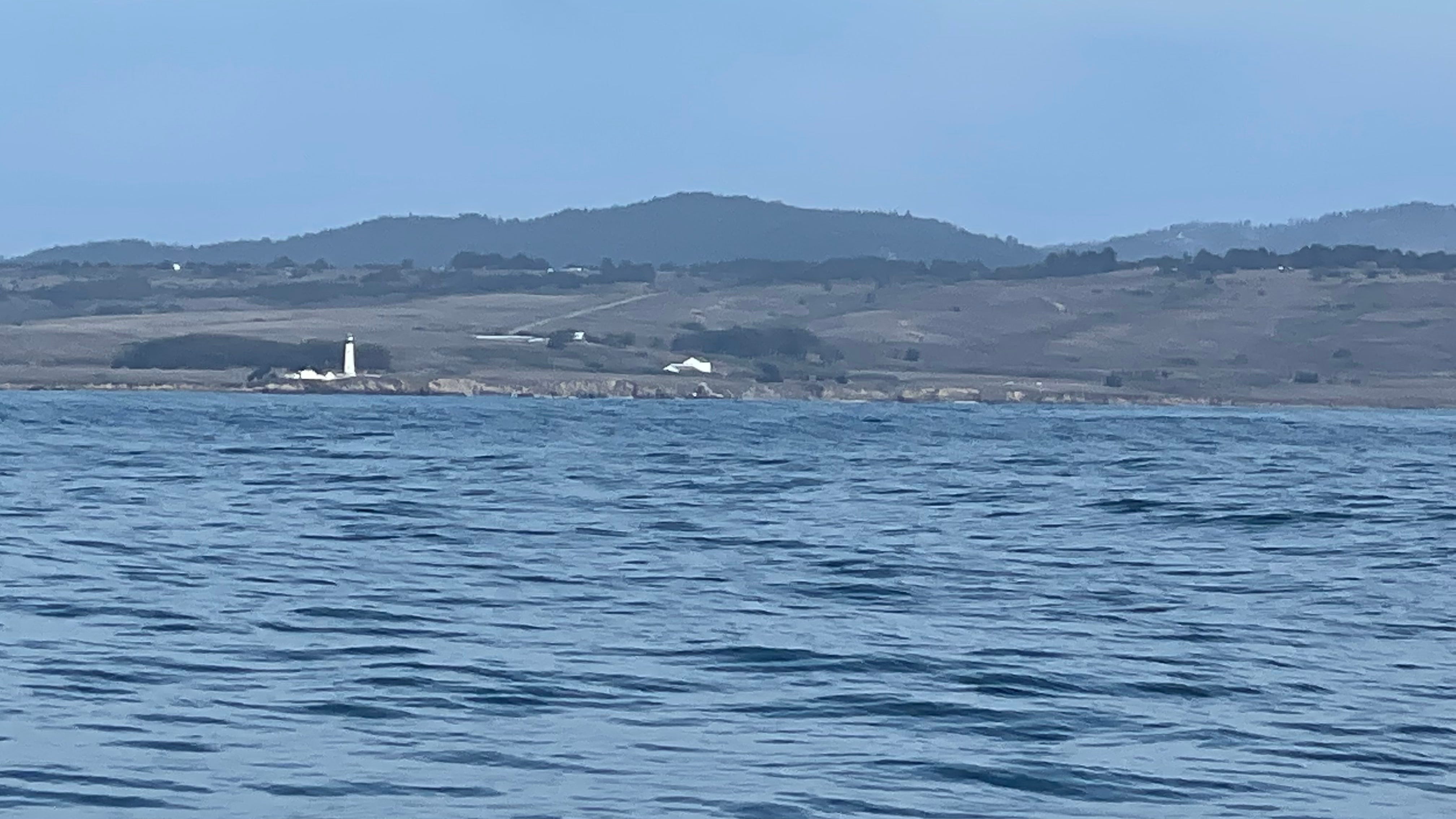 After we round Pigeon Point, the wind wraps around to a run1 and picks up to about nine knots. We decide to douse the engine and pull out the jib. We are finally sailing! It’s always a wonderful moment when we shut the engine off. All we hear are the sounds of the water and the birds. We are technically now in Monterey Bay and we are greeted by a large school of seals! They are swimming and eating fish. It’s a wondrous scene.
