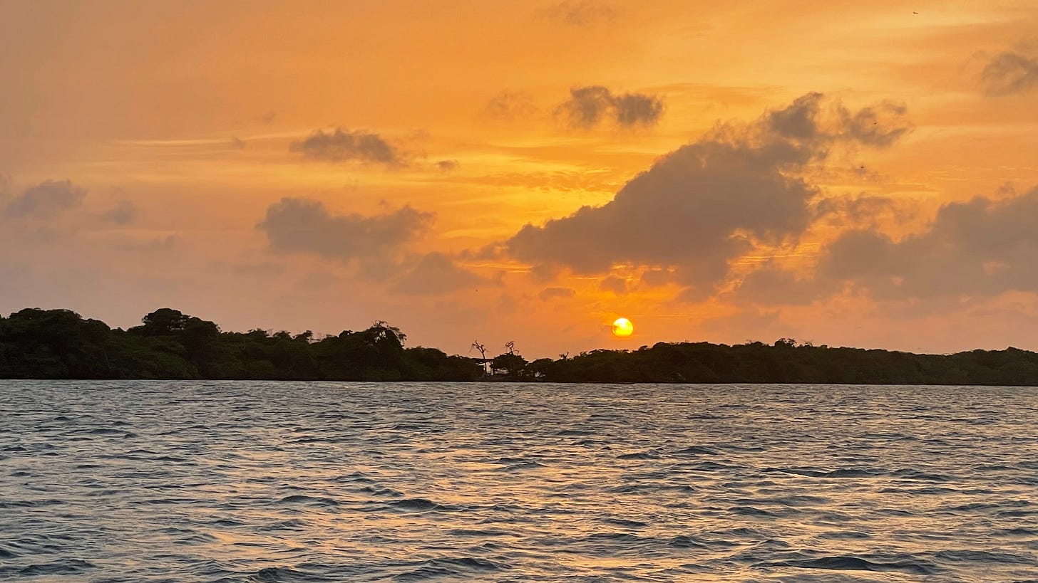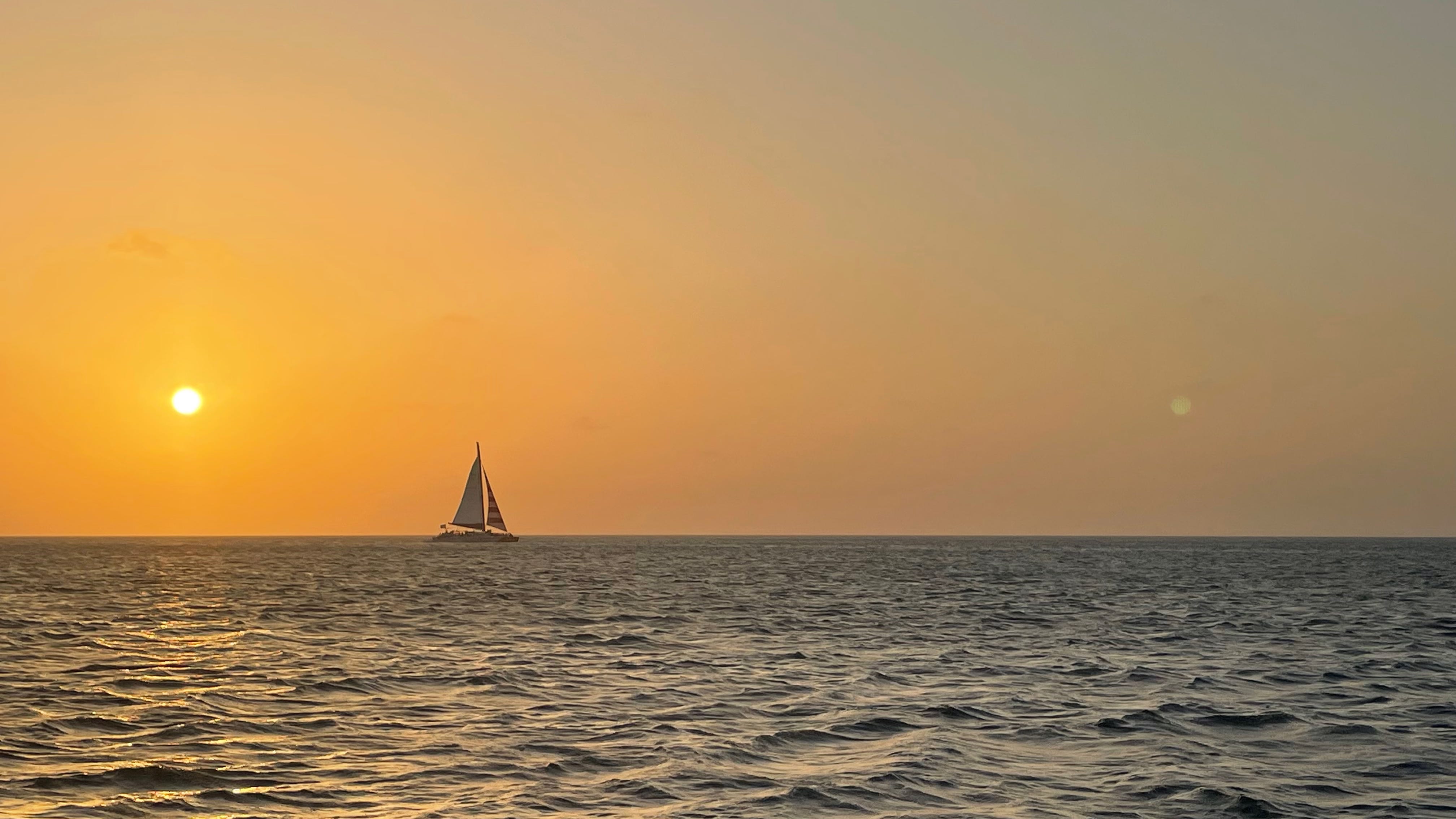 We left in the early evening and set our sails for Aruba so we could time going past Barranquilla in the morning when it was daylight. Barranquilla is located on the western bank of the large Magdalena river, with its mouth exiting into the Caribbean Sea. The river has historically served as a vital transportation route for commerce and was crucial for the development of Barranquilla as a major port city, but it’s also notorious for the debris coming out of the mouth of the river, especially after a lot of rain, which luckily was not in the forecast. Still we wanted to be sure we could see any floating tree trunks or other big pieces of debris floating on the water from the rush of the river’s flow. (We’ve heard stories about sailors seeing whole cows floating by!)