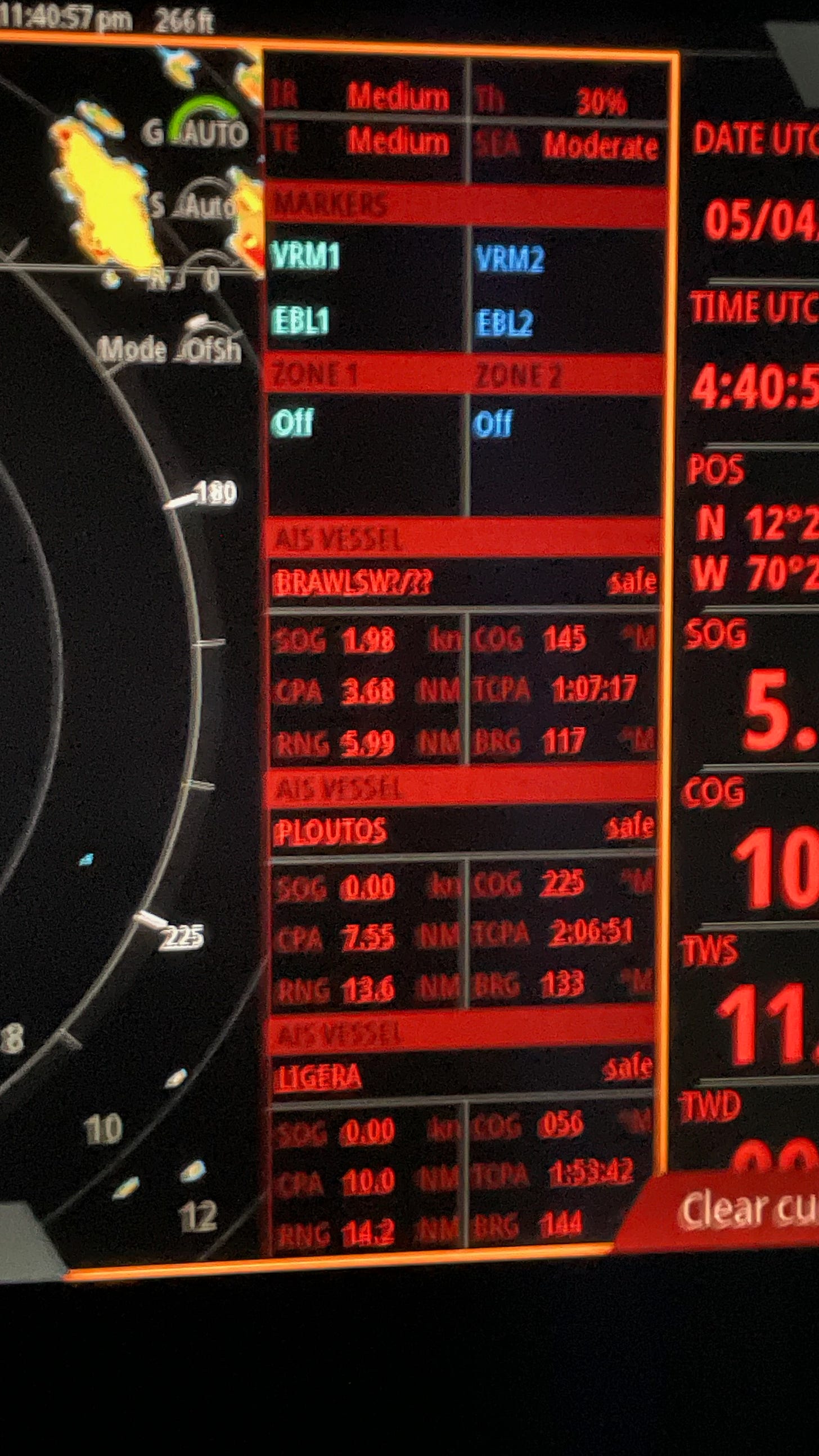 For our friends who were behind us by a larger distance, it was going to take them longer to get to Aruba. The storm lasted through out the night and the wind and waves all the next day. Bohemia was not far behind us and was following a similar track which was straight to Aruba because we were both motor sailing. Other friends had decided to head north, hoping to get away from the current to pick up speed, but they ended up going into a worse sea state.